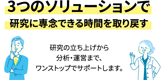 専任リサーチコンサルタントが、調査⽬的に応じた研究デザインやサンプルサイズ計算などをサポート。